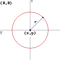 Die Menge der Punkte für einen Kreis ergeben sich aus drei Parametern. Dem x-Wert, der besagt, wieviel Pixel der Kreis nach recht verschoben wird, dem y-Wert, der besagt wieviel Pixel der Kreis nach unten verschoben wird, und dem Radius r, der besagt, wieviel Pixel jeder Punkt der Kreislinie vom Mittelpunkt entfernt ist. Der Punkt (x,y) stellt den Mittelpunkt dar. Zugrunde liegt dabei die Berechnung: